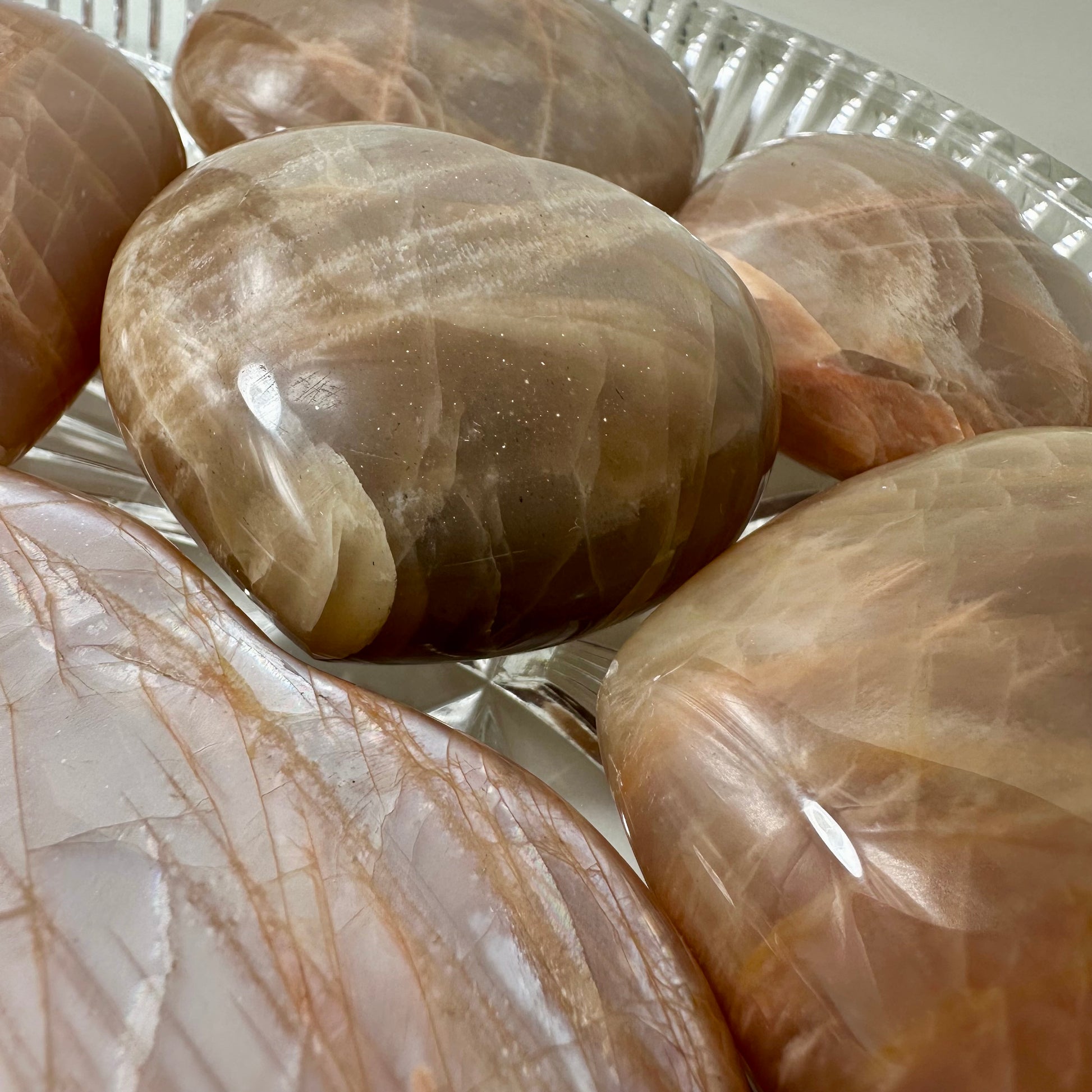 Peach Moonstone Hearts embody gentle, nurturing energy prized by crystal enthusiasts for emotional balance and inner peace. Each heart is uniquely formed with natural variations in weight, size, and pattern—no two pieces are identical. Traditionally associated with compassion, intuition, and self-discovery, peach moonstone carries a softer vibration than its white counterpart. These handpicked specimens make meaningful gifts for meditation practitioners, collectors, or anyone seeking grounding support during life transitions. Perfect for altar work, pocket stones, or display pieces that celebrate nature's artistry.