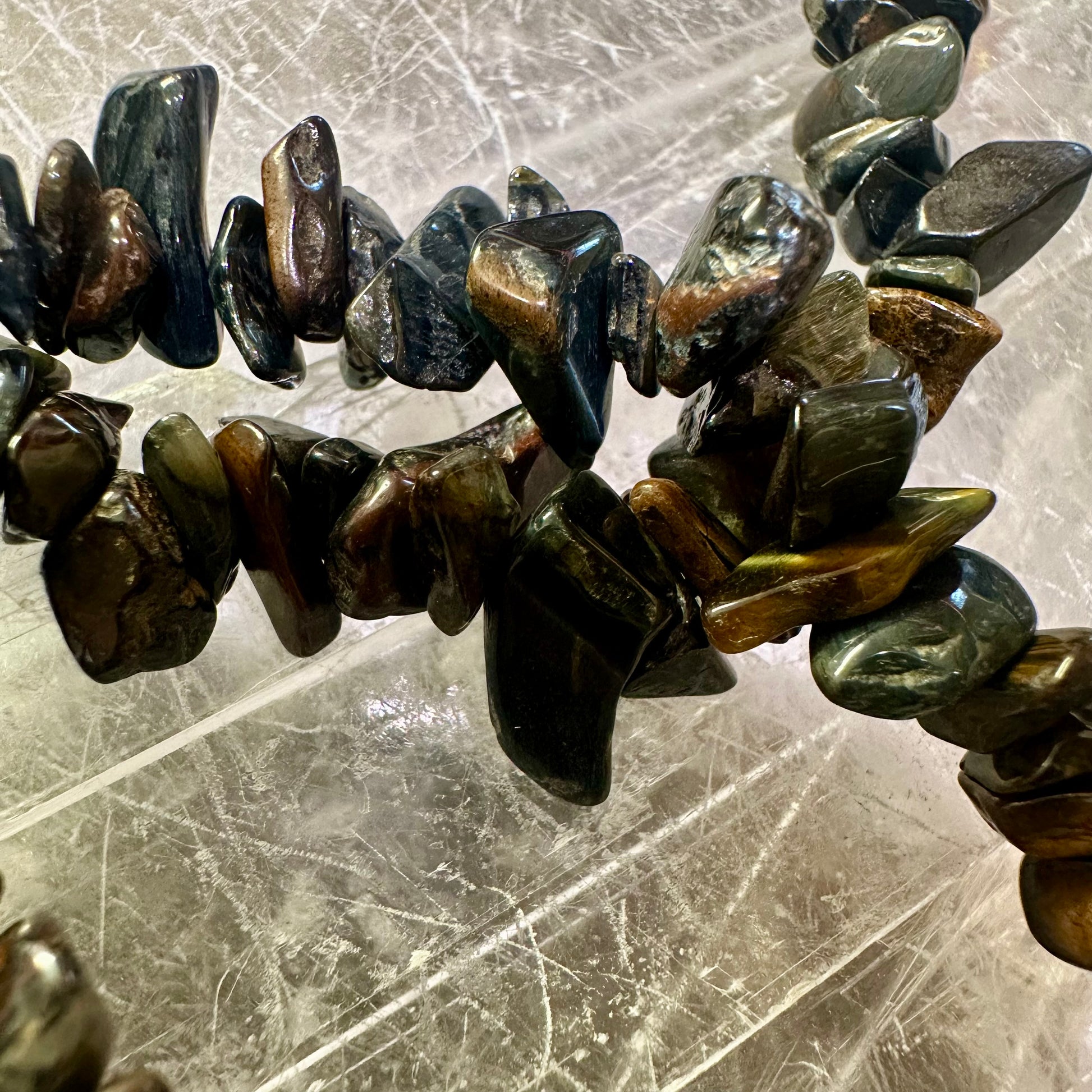 # Peter Site Chipped Bracelets Handcrafted bracelets featuring genuine Peter Site chips, a semi-precious stone prized for its grounding and stabilising properties. Each piece showcases the natural variations and earthy tones characteristic of this mineral, making every bracelet uniquely individual. Peter Site is traditionally associated with emotional balance and inner strength, making these bracelets an ideal gift for those seeking meaningful wellness jewellery. Perfect for daily wear or as a thoughtful present for the mindful individual in your life.
