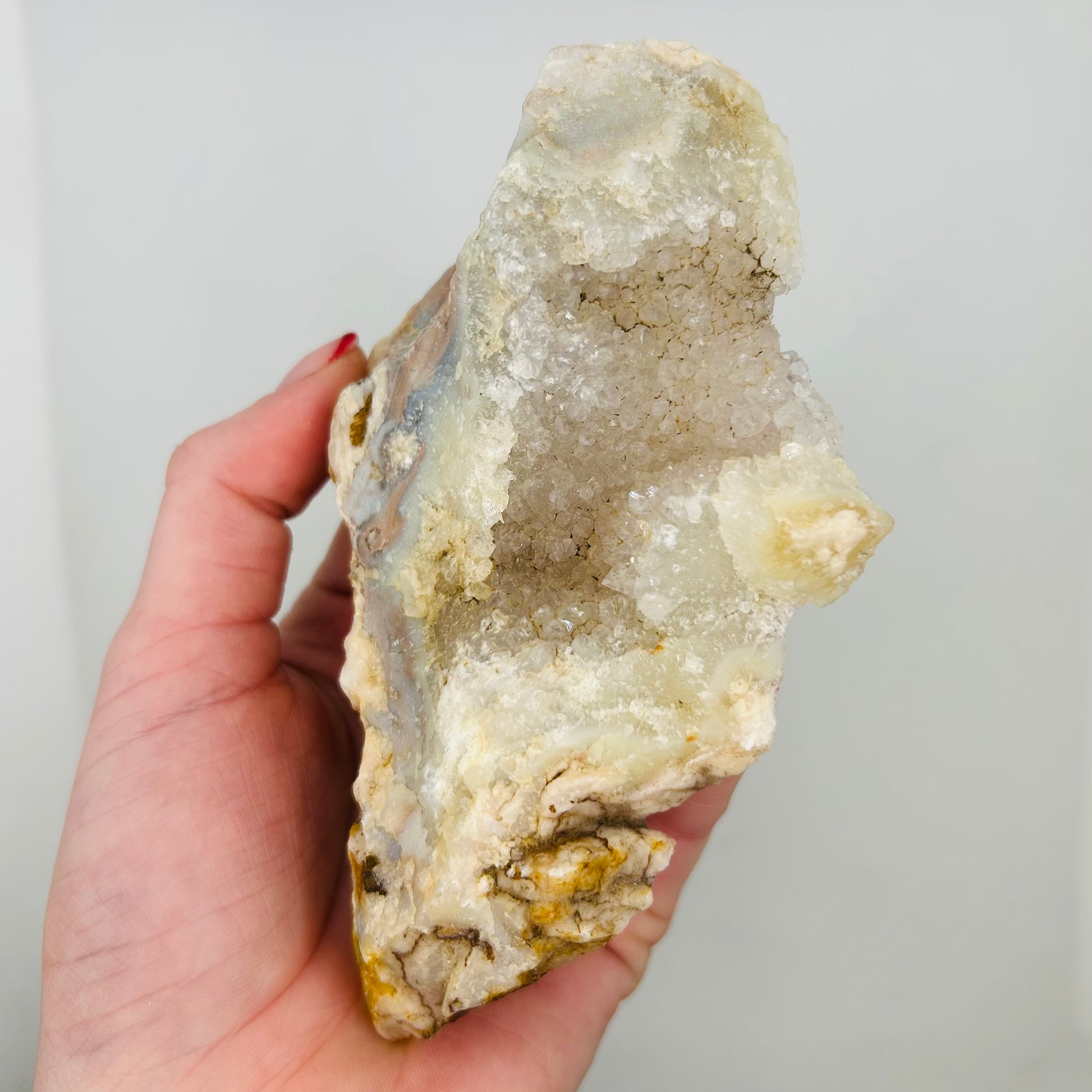 This Pink Amethyst & Flower Agate Raw specimen is a beautiful addition to any crystal collection. The contrasting colors of pink and green create a visually stunning display, while the raw form showcases the natural beauty of these stones. Each piece is unique and may offer healing properties to enhance your well-being.
