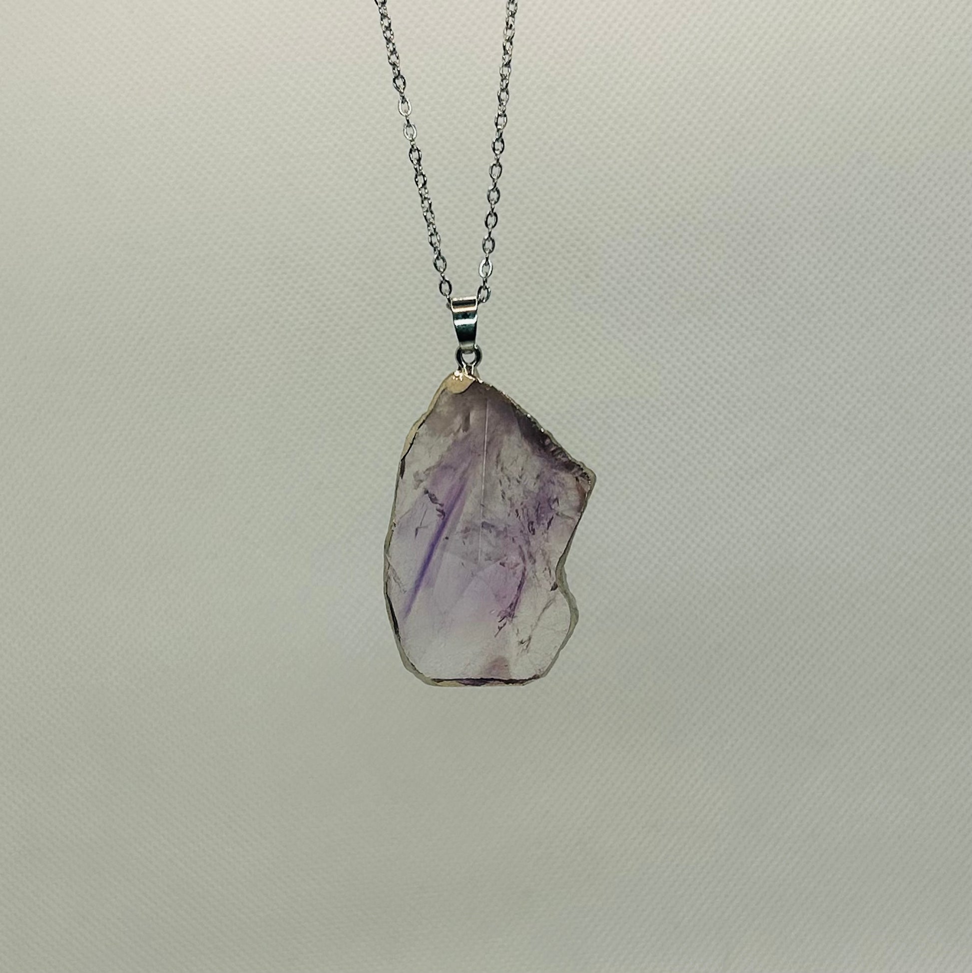 Expertly crafted with a raw Amethyst pendant, this plated necklace offers a unique touch of elegance to any outfit. Amethyst is known for its calming properties, while the raw form adds a natural, organic element. Elevate your style with this one-of-a-kind piece.