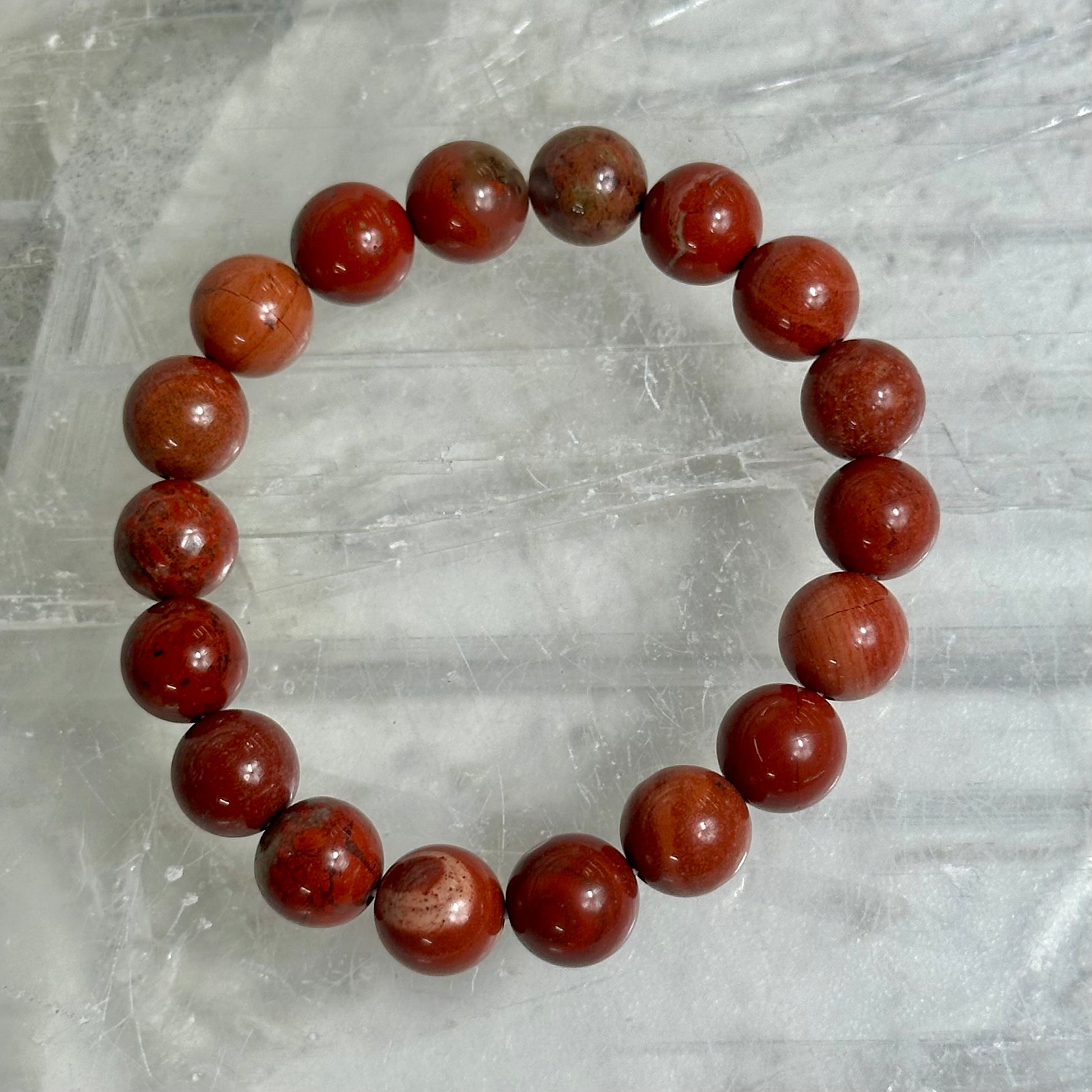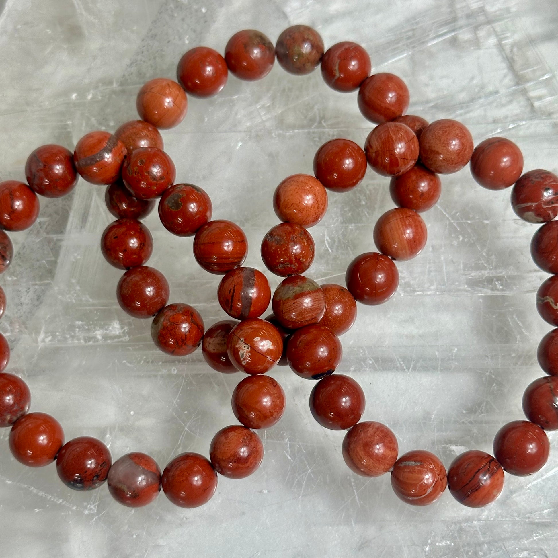 Red Jasper has long been valued in crystal healing traditions for its grounding properties and connection to vitality. These 10mm bead bracelets feature smooth, polished stones in rich crimson tones, making them both visually striking and tactilely pleasant to wear. The standard 10mm size offers a balanced aesthetic suitable for everyday wear, while the natural variations in each stone ensure uniqueness. Red Jasper is traditionally associated with stability, courage, and renewed energy. Whether worn as a personal talisman or simply appreciated for its natural beauty, these bracelets serve as a meaningful accessory for those drawn to the mineral's earthy elegance and symbolic significance.