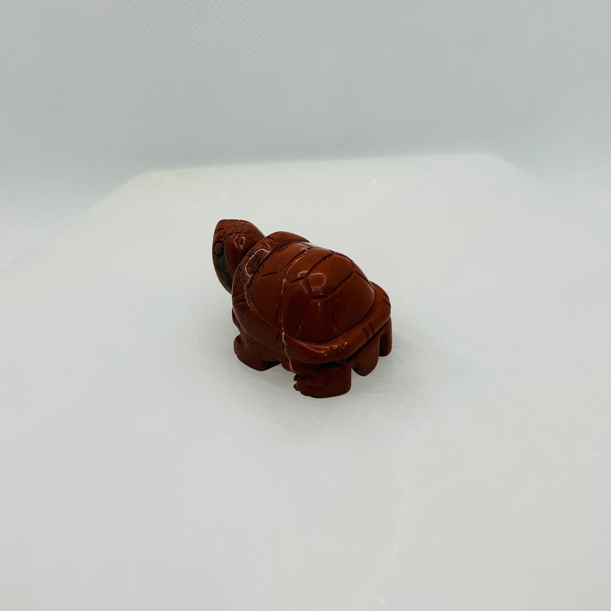 Introducing the Red Jasper Turtle - a charming addition to any collection. Crafted from red jasper, this turtle is not only aesthetically pleasing, but also holds potential healing benefits such as promoting inner strength and stability. With its unique color and design, this turtle is a must-have for any nature or crystal lover.