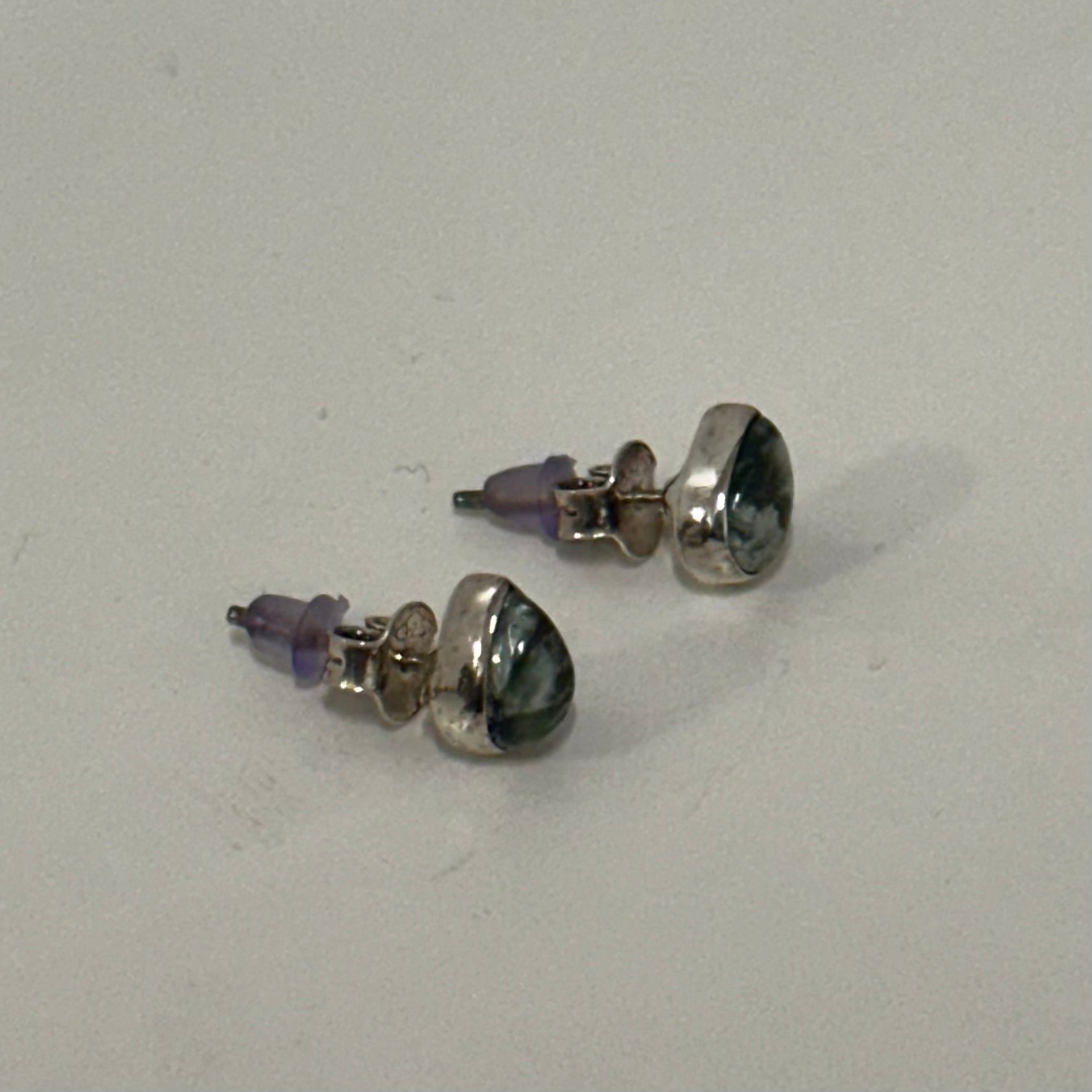 Serpentine earrings showcase the distinctive banded patterns and rich green hues of this semi-precious stone, prized for its natural beauty and subtle variations. Each pair features polished serpentine that catches light beautifully, making them versatile enough for everyday wear or special occasions. Known for its grounding properties, serpentine has been valued across cultures for centuries. These earrings combine geological elegance with wearable sophistication, offering a refined accessory that complements both contemporary and classic styles.
