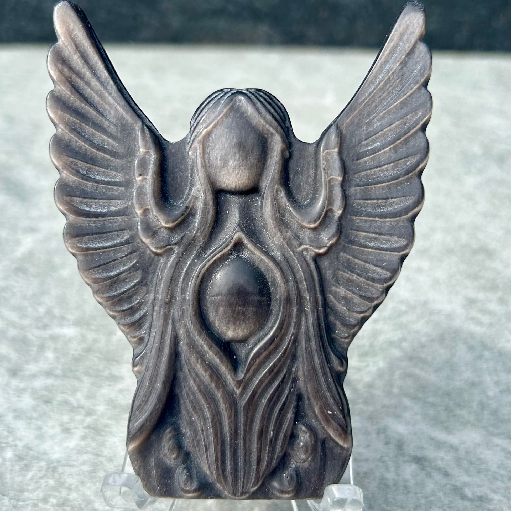 Silver Sheen Obsidian Fairy is a finely crafted crystal known for its striking silver shimmer and protective properties. This stone is valued for its ability to shield against negative energies while promoting clarity and emotional balance. Ideal for those seeking both aesthetic beauty and metaphysical benefits, it serves as a powerful tool for grounding and enhancing intuition in spiritual practices.