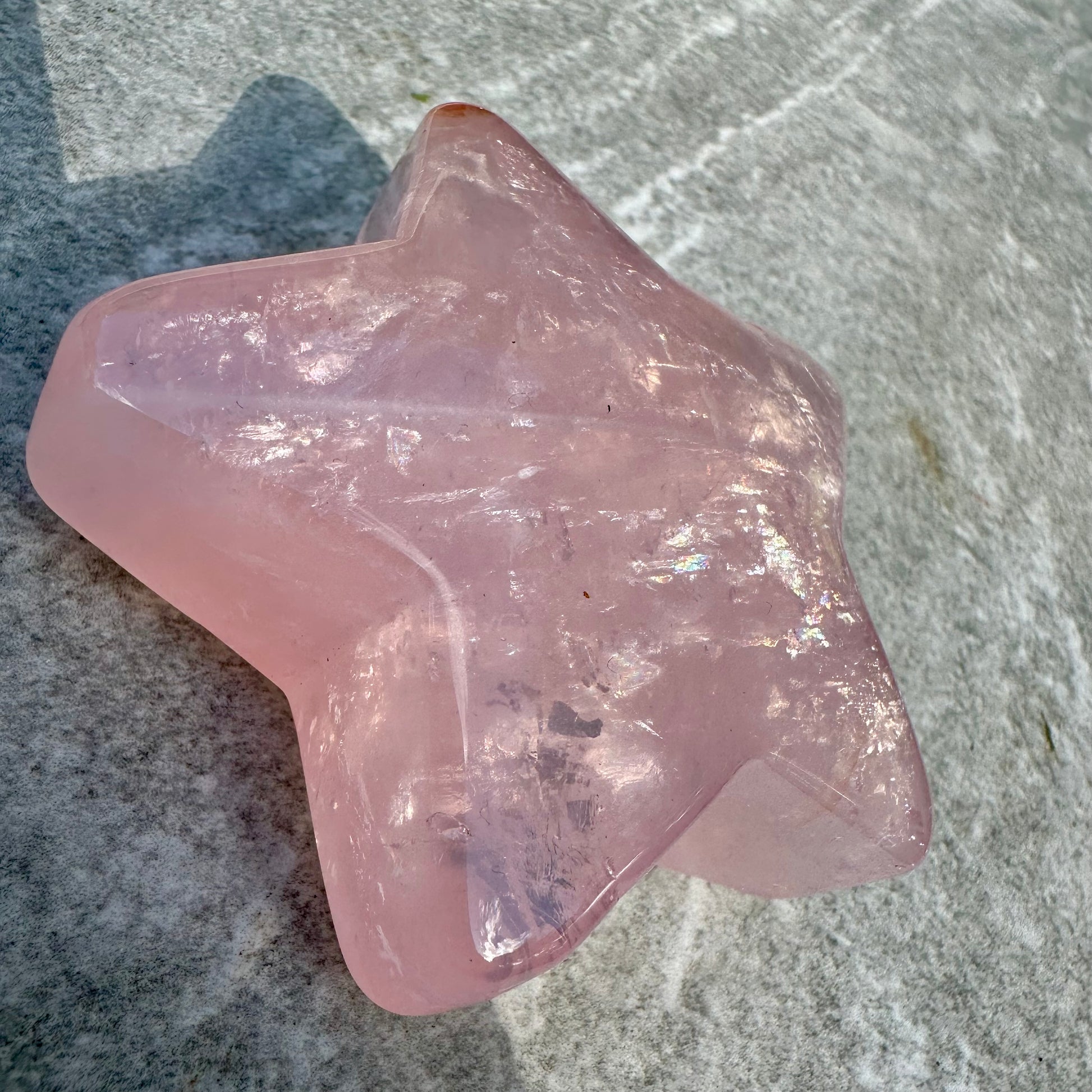 This Star Rose Quartz Star Carving features a unique star shape, carved from genuine rose quartz. It is carefully polished and smooth, making it a stunning addition to any crystal collection or as a unique decoration. Rose quartz is known for promoting love, compassion, and harmony.
