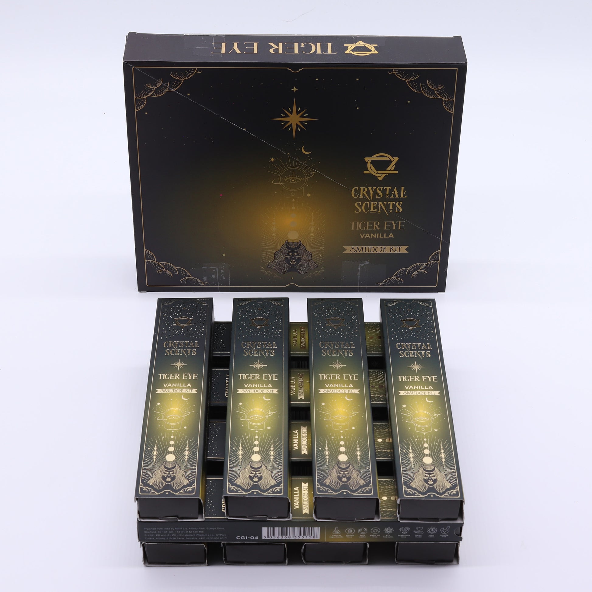 Tigers Eye Incense Sticks Harness the grounding energy of tiger's eye with these premium incense sticks, crafted to support focus, courage, and inner strength. Each stick burns slowly and evenly, releasing a warm, earthy fragrance that complements meditation, yoga, or daily mindfulness practices. Ideal for those seeking to enhance their spiritual space with intention-setting rituals. Perfect as a thoughtful wellness gift for practitioners at any level.