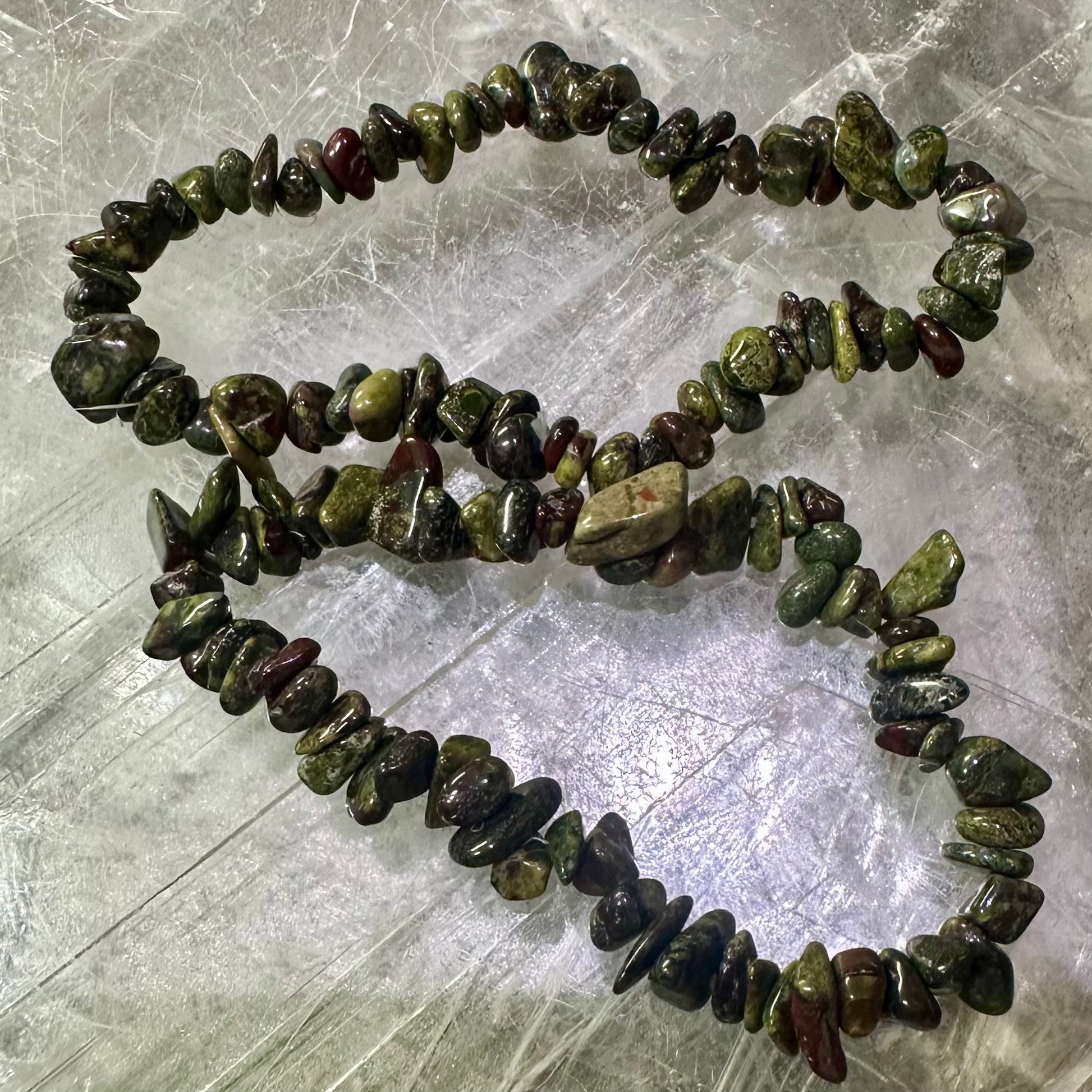 Unakite, a striking blend of pink feldspar and green epidote, has long been valued for its grounding and heart-opening properties. These chipped bracelets showcase the stone's natural beauty in its raw, authentic form. Each piece is unique, featuring the characteristic speckled pattern that makes unakite instantly recognisable. Ideal for crystal enthusiasts seeking everyday wear with meaningful energy, these bracelets combine aesthetic appeal with the purported emotional balance and renewal that unakite is traditionally associated with. A versatile addition to any wellness collection.