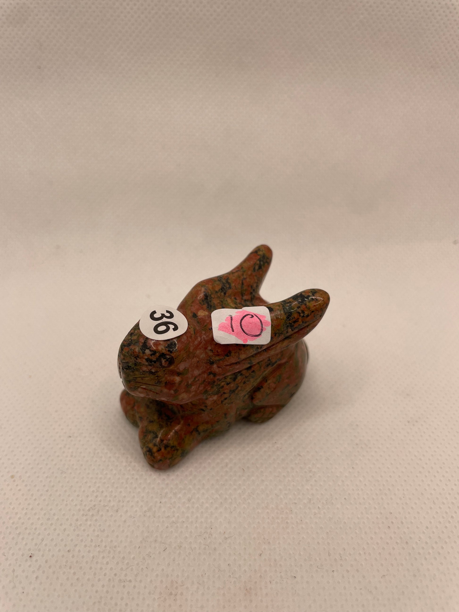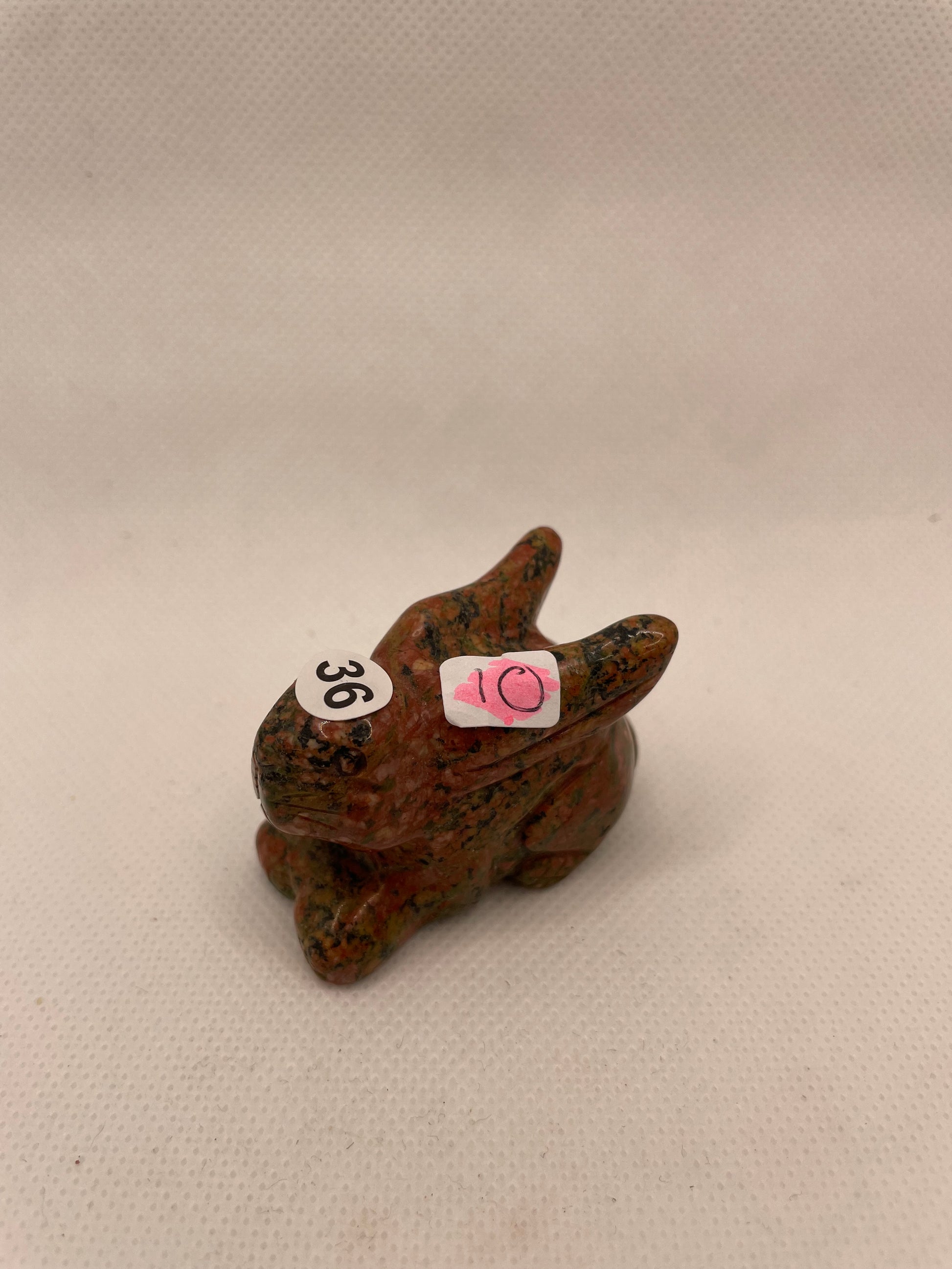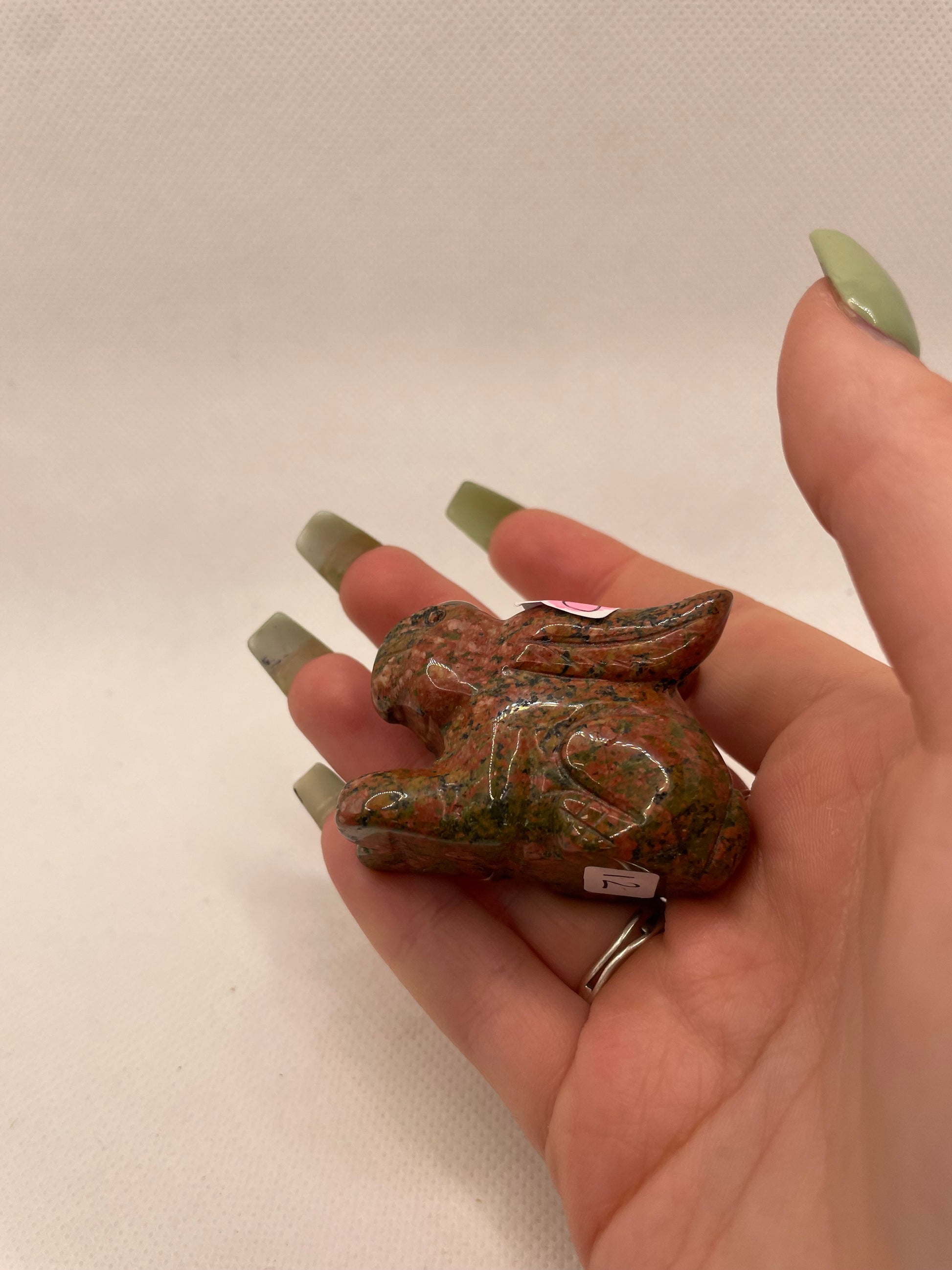 The Unikite Rabbit is a unique addition to your collection. Made with unikite, a type of granite known for its healing properties, this rabbit statue is a beautiful and beneficial piece of decor. Perfect for any home or office, it's a wonderful way to bring positive energy into your space.