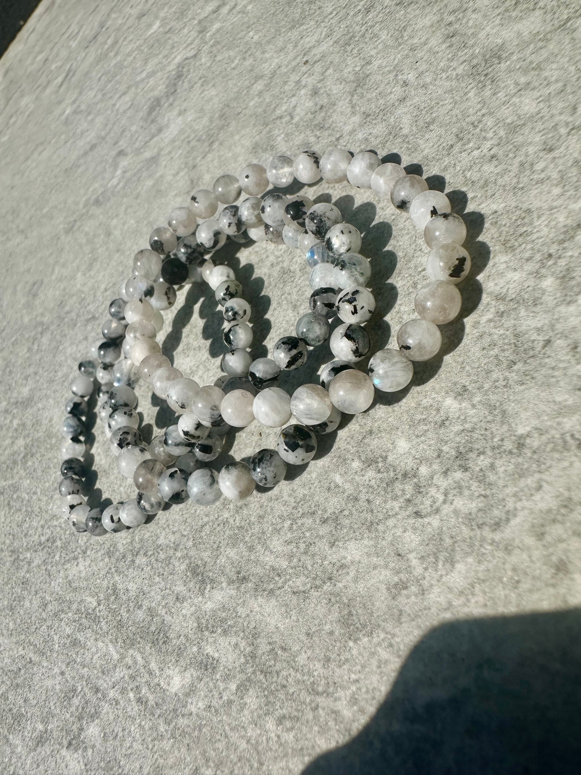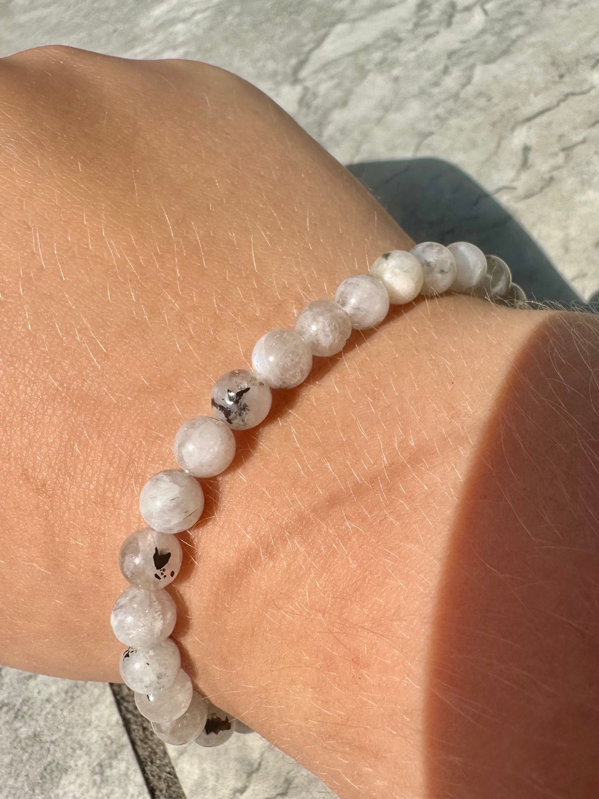These White Moon Stone Bracelets feature 6mm stones in stock now. Don't wait - get yours before they are all gone!